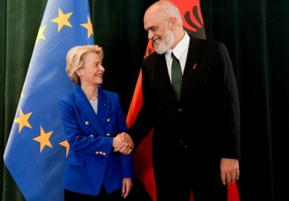 Presidentja e Komisionit Evropian, Ursula von der Leyen, vizitoi të hënën Shqipërinë dhe theksoi progresin “jashtëzakonisht të shpejtë” të vendit në rrugën e tij drejt Bashkimit Evropian. Ajo njoftoi disbursimin e 100 milionë eurove nga Plani i Rritjes për Ballkanin Perëndimor, duke e cilësuar këtë si një shpërblim për reformat e ndërmarra nga vendi.