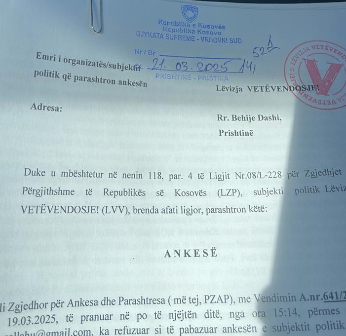 Lëvizja Vetëvendosje sot është ankuar në Gjykatën Supreme duke kërkuar anulimin e rreth 19 mijë votave të LDK-së të ardhura me postë, me pretendimin se janë manipuluar.