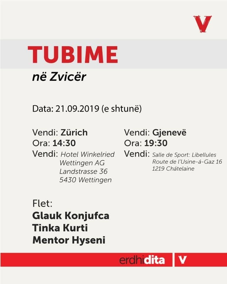 Nga ora 14:30 do të mbajë tubim në Cyrih, Hotel Winkelried, Wettingen AG, Landstrasse 36 5430 Wettingen.