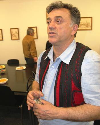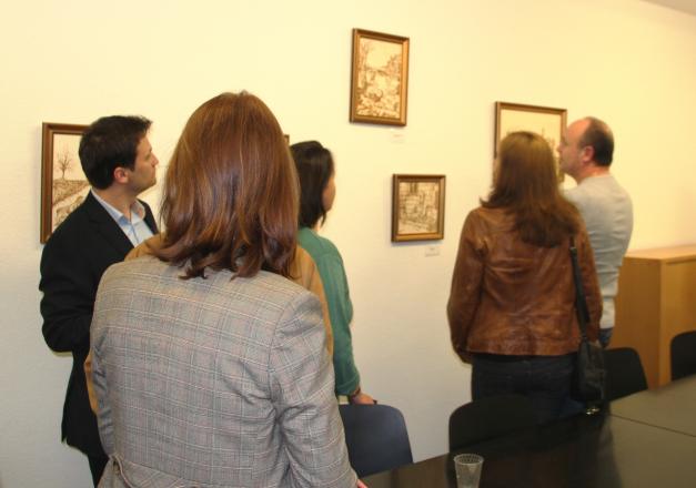 Pamje qytetesh të Zvicrës, Kosovës e Shqipërisë, peizazhe të natyrës zvicerane e shqiptare, figura kafshësh, portrete personalitetesh historike… janë punimet brenda kornizave kryesisht të formatit të vogël, që janë varur në muret e që shërbejnë si galeri artesh.