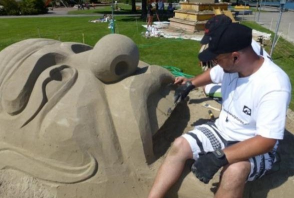 Të vendosur buzë liqenit në njërën anë dhe karshi restoranteve e përballë ekipeve konkurruese, si Holanda, Letlanda, Rusia, Bullgaria, Kenia dhe Çekia, në garë për të gdhendur skulpturën më të mirë nga rëra, takojmë dy gjilanasit e relaksuar në pritje të ndarjes së çmimeve pas punës së mundishme njëjavore që kërkonte nga artistët pjesëmarrës ilustrimin më të mirë përmes artit figurativ të temës së përzgjedhur -„kafsha në ty“.