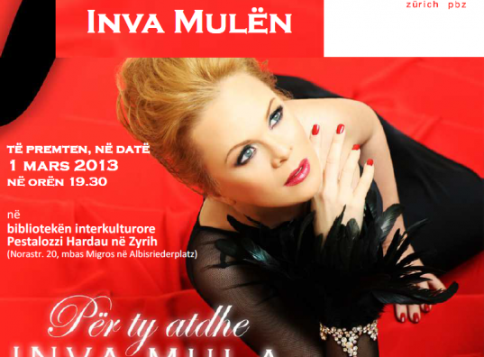 Të premten, më 1 mars 2013, në orën 19.30 në bibliotekën interkulturore Pestalozzi Hardau në Cyrih, Inva Mula dhe fondacioni HI Classic ju ftojnë në promovimin e CD „Për ty Atdhe“.