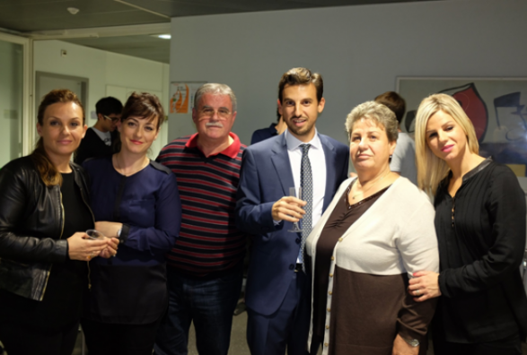 Pastaj profesorë, studentë e miq së bashku kaluan në holin e ndërtesës së Universitetit, ku me një aperitiv të organizuar nga familjarët e z. Reka ndanë gëzimin e tyre për këtë ngjarje me dobi të përgjithshme.