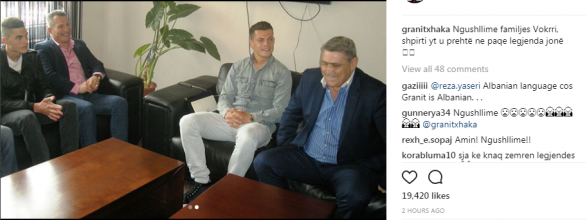 Xhaka është ndër futbollistët e parë që ka reaguar pas vdekjes së Vokrrit duke e quajtur atë si legjendë. “Ngushëllime familjes Vokrri, shpirti yt u prehtë në paqe legjenda jonë” ka shkruar Xhaka në rrjetin social Instagram ku edhe ka postuar dy foto me të ndjerin.