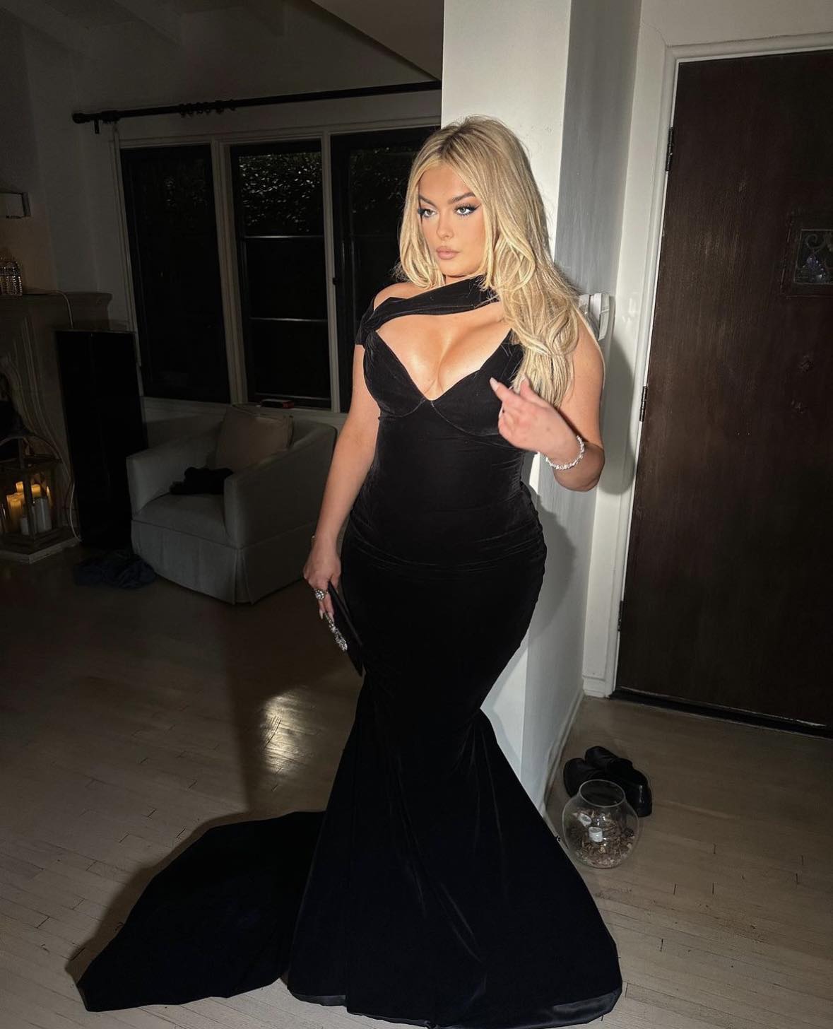 Një ndër yjet që Sahiti ka veshur është edhe këngëtarja me famë botërore, me prejardhje shqiptare, Bebe Rexha. Për Rexhan, Sahiti ka krijuar një fustan të zi të gjatë, me prerje karakteristike tek pjesa e dekoltesë.
