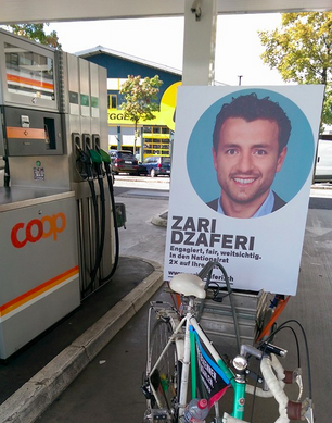 „Me biçikleten time me poster jam shumë aktiv në rrugët e Zugut. Unë shpërndaj fletushka, bisedoj me njerëz dhe e them mendimin tim. Në të njëjtën kohë unë jam shumë i aktiv në media. Unë jam për këtë arsye i bindur se fushata ime është interesante dhe e pranueshme për të gjithë. Kjo fushatë gjithashtu ofron perspektiva për të shprehur programin tim më mirë për qytetarët”, thotë Xhaferi, i cili e konsideron të jetë senzacion nëse siguron një ulëse në Parlamentin e Zvicrës.