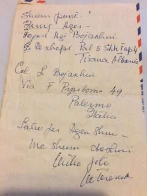 Në letër janë të shkruara edhe adresat e tyre, e Ages në Tiranë dhe e Lazrit në Palermo.