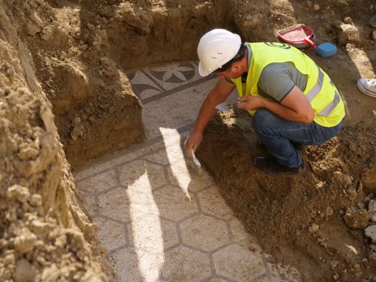 Në Durrës, një ekip arkeologësh zbuloi një mozaik të rrallë që nga vlerësimi paraprak duket se i përket fundit të shekullit I dhe fillimit të shekullit II të e.s. dhe të kohës së ndërtimit të Amfiteatrit të Durrësit.