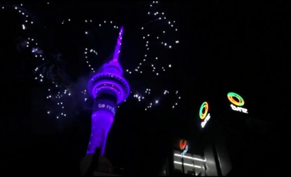 Në kullën e famshme në qytetin e Auckland, ku ora sapo shënoi 00:00, filluan të shkrepen fishekzjarrët që ndriçuan qiellin për disa minuta.