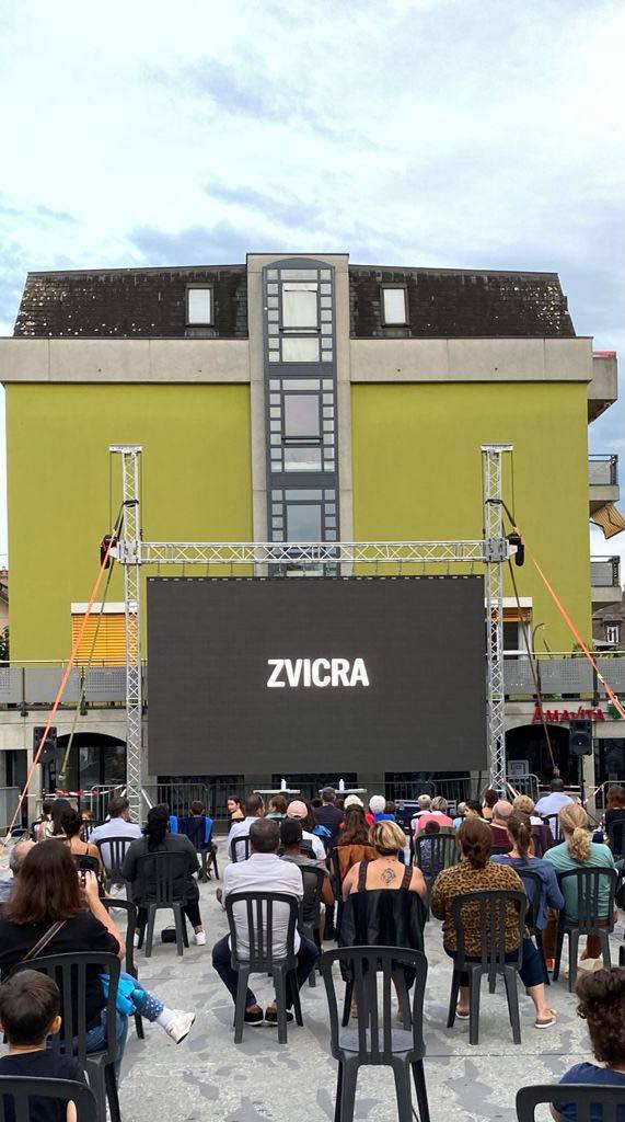 Në fillim të mbrëmjes u shfaq ekrani gjigant, me filmin e prezentuar ‘’Zvicra”, një film dokumentar i realizuar nga dy regjisorët, njëri shqiptar e tjetri zvicran, e që do të vazhdojë turnen e shfaqjes në disa qytete të Zvicrës frankofone dhe më pas do të transmetohet në RTS (Radio televizionin zvicran) në nëntor.