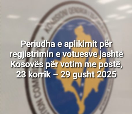 Nga 23 korriku deri më 29 gusht, të gjithë shtetasit e Kosovës me të drejtë vote që jetojnë jashtë vendit mund të regjistrohen për të votuar për kryetarë të komunave dhe për kuvende komunale.