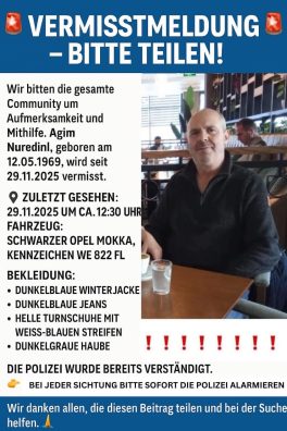 Agim Nuredini, shqiptar 56 vjeçar, banues në Wels të Austrisë që nga dita e shtunë është shpallur i zhdukur. Për herë të fundit është parë rreth orës 12:30 minuta të asaj dite, kur është dal nga shtëpia me veturën e tij Opel Mokka, ngjyrë të zezë.