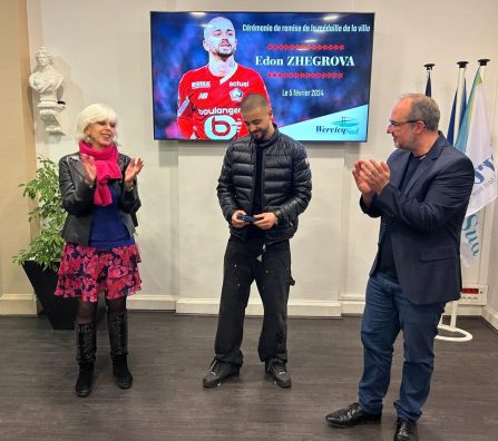 Futbollisti shqiptar Edon Zhegrova, është nderuar me medalje David Heiremans, kryetar i Bashkësisë së Wervicq-Sud, në Francë.