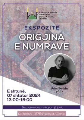 Bashkësia Islame Shqiptare në Netstal do të jetë mikpritëse e një ekspozite të jashtëzakonshme të artistit Urim Berisha-Urbani. Nën titullin “Origjina e Numrave,” Urim Berisha prezanton një koleksion pikturash abstrakte, të krijuara gjatë dy viteve të fundit. Ekspozita ofron një vështrim unik mbi ndërthurjen e artit, kulturës dhe historisë, duke ftuar vizitorët të zbulojnë botën e numrave në një mënyrë të re dhe magjepsëse.