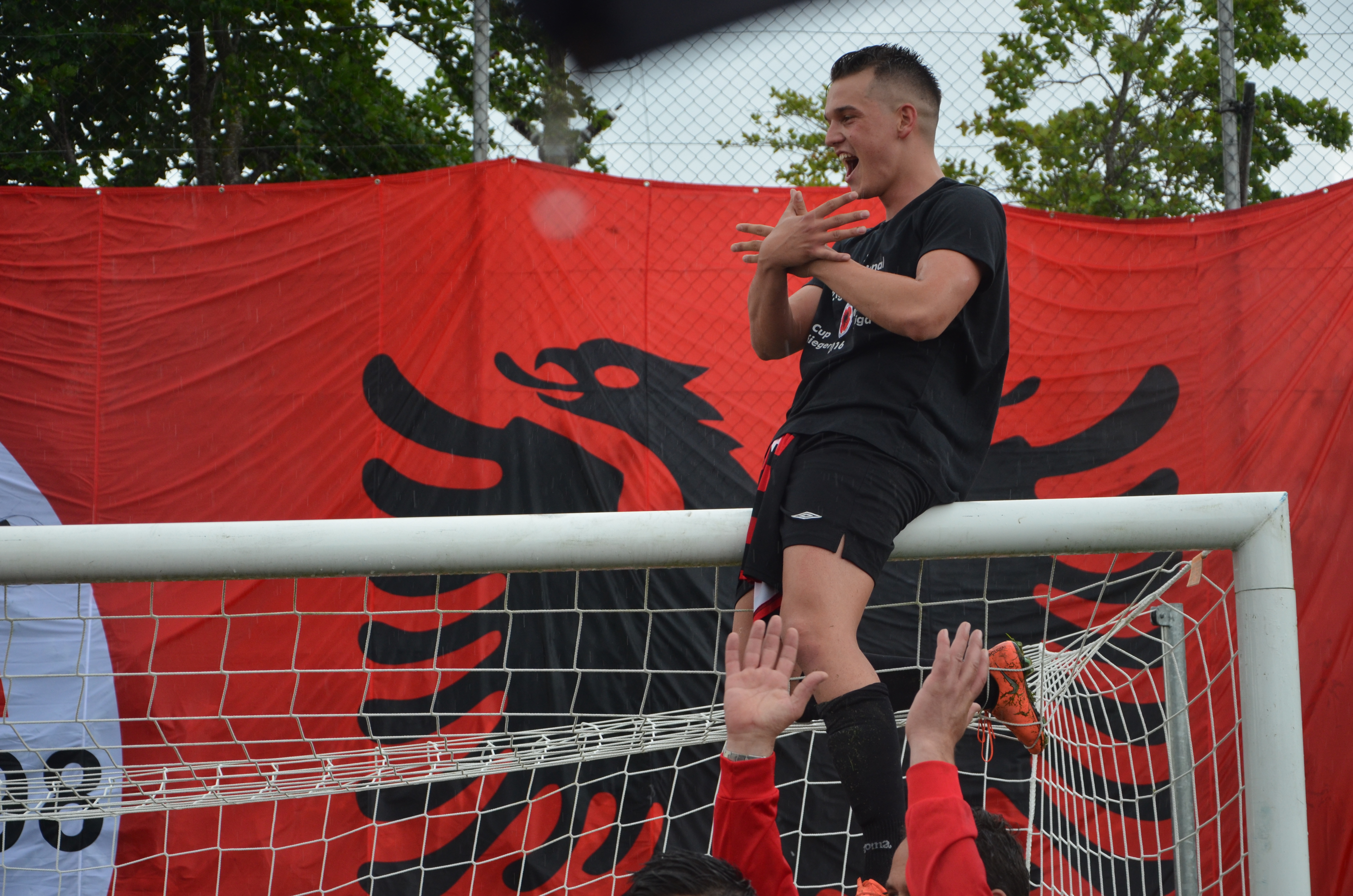 Gëzimi dhe festa e tij me lojtarët, stafin e shikuesit e shumtë që kishin ardhur për t’i mbështetur vetëm sa bëhej edhe më i gjallë mes rrëshqitjev para kamerave për të kapur momentin më të mirë të një kujtimi të veçantë në sportin më emocionues, futbollin. Por, edhe mes shokëve të shumtë shqiptarë, me lojtarin e pandalshëm ofensiv të FC Ilirsë, talentin e ri italian, Bainco Massimiliano.