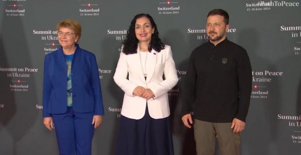 Presidentja e Kosovës, Vjosa Osmani, po merr pjesë në Samitin e Paqes për Ukrainën që po mbahet në Zvicër, ku sot është pritur nga presidentja zvicerane, Viola Amherd dhe nga homologu ukrainas, Volodymyr Zelenskyy, transmeton albinfo.ch.