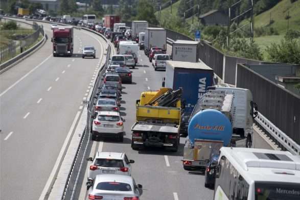 Që në mëngjesin e së premtes, vëllimi i trafikut në Gotthard çoi në bllokim trafiku midis Quinto dhe Airolo përpara portalit jugor të tunelit Gotthard. Ndërsa nga ora 11:00 kolona ishte rritur në tetë kilometra. Udhëtarëve u duhej të bënin durim për një orë e 40 minuta.