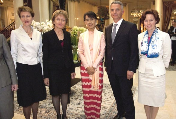 Mikpritësi i saj, ministri i jashtëm Didier Burkhalter në një konferencë të përbashkët shtypi me mysafiren nga Birmania ka thënë se Zvicra do të mbështesë Birmaninë me një program zhvillimor prej 25 milionë frangash në vit. Këto të holla do të përdoren para së gjithash për arsim profesional, për çminim dhe për përkujdesje mjekësore.