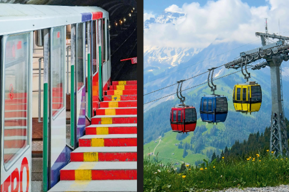 Kabllot, telekabinat apo teleferikët helvetikë transportojnë afro 300 milionë pasagjerë. Ata fluturojnë mbi shkëmbinjtë e pjerrët që çojnë në majat me pamje që të lënë pa frymë, që kalojnë ura, livadhe dhe pamje të tjera mahnitëse. Shumica prej tyre janë ndërtuar në kantonet alpine të Valais, Graubünden, Ticino dhe Bernë, por ata mund t’i gjejmë edhe në kantonet më të “sheshtë” të vendit.