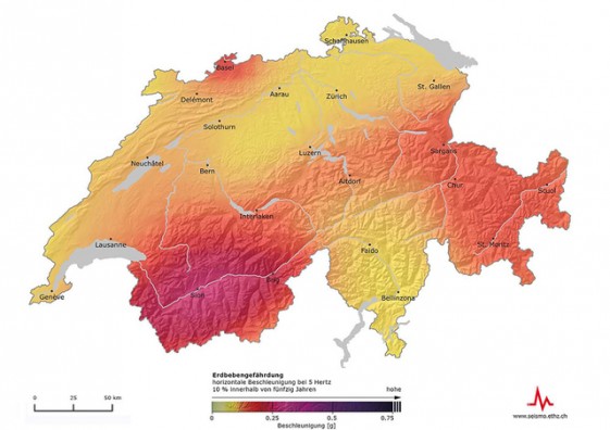 Shërbimi sizmologjik i Zvicrës ka prezantuar sot hartën që tregon shkallën e rrezikshmërisë për tërmete sipas regjioneve të vendit. “Modeli i rrezikshmërisë nga tërmetet” i publikuar sot dallon zonat me ngjyra: nga ngjyra e verdhë që tregon rrezikshmëri të ulët deri te tonet e të kuqes së ndezur, shenjë për rrezikun e lartë.