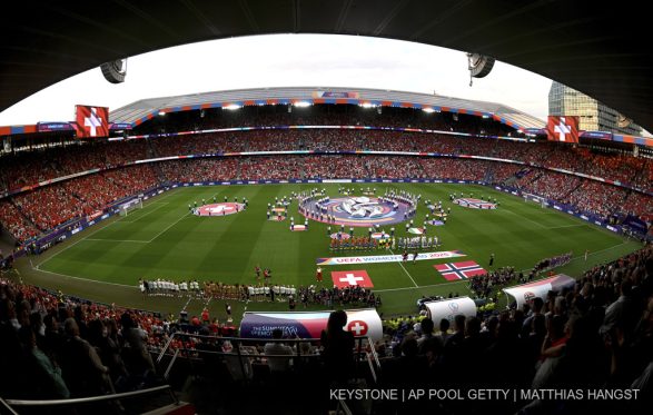 Ceremonia hapëse u zhvillua para ndeshjes Zvicra-Norvegjia, ku stadiumi ishte i mbushur me tifozë dhe ngjyra.