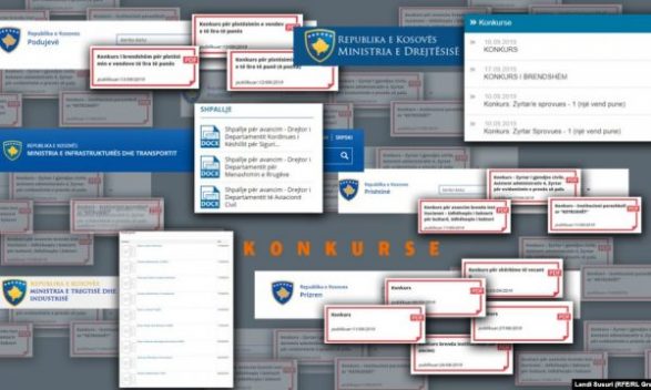 Radio Evropa e Lirë më herët i ka verifikuar shumë prej konkurseve të shpallura në faqet e internetit të disa institucioneve shtetërore, siç janë faqet e internetit të Ministrisë së Drejtësisë, asaj të Infrastrukturës, Ministrisë së Diasporës, asaj të Administratës Publike, Ministria e Tregtisë dhe Industrisë, e po ashtu edhe në nivelin lokal, ku janë identifikuar Komuna e Prishtinës, e Podujevës, ajo e Prizrenit e komuna tjera, ku figurojnë shumë konkurse të hapura për punësime.