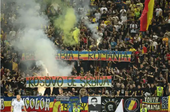 Tifozët rumunë bënë skandal duke e shfaqur një baner me mbishkrimin “Kosova është Serbi”, ndërsa bënë edhe thirrje “Serbia, Serbia”, duke i fyer me këtë rast futbollistët e Kosovës, që vendosën të largoheshin nga fusha, bashkë me ata rumunë, derisa u pastrua ajo pjesë e tribunës, përcjell albinfo.ch.